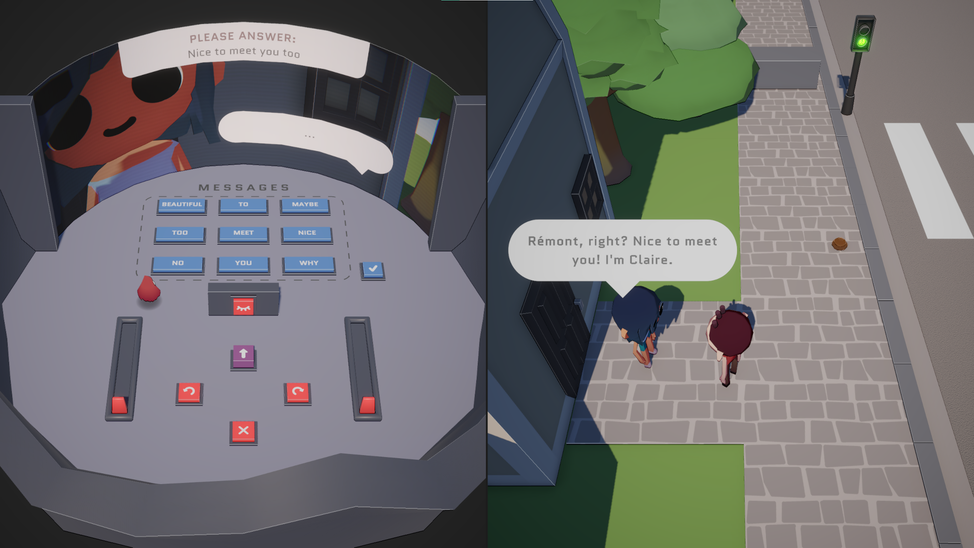 You're going on a date with Claire, a stunning woman. You are, however, a tiny alien controlling a human-looking mecha, so that may render your task a bit difficult.
